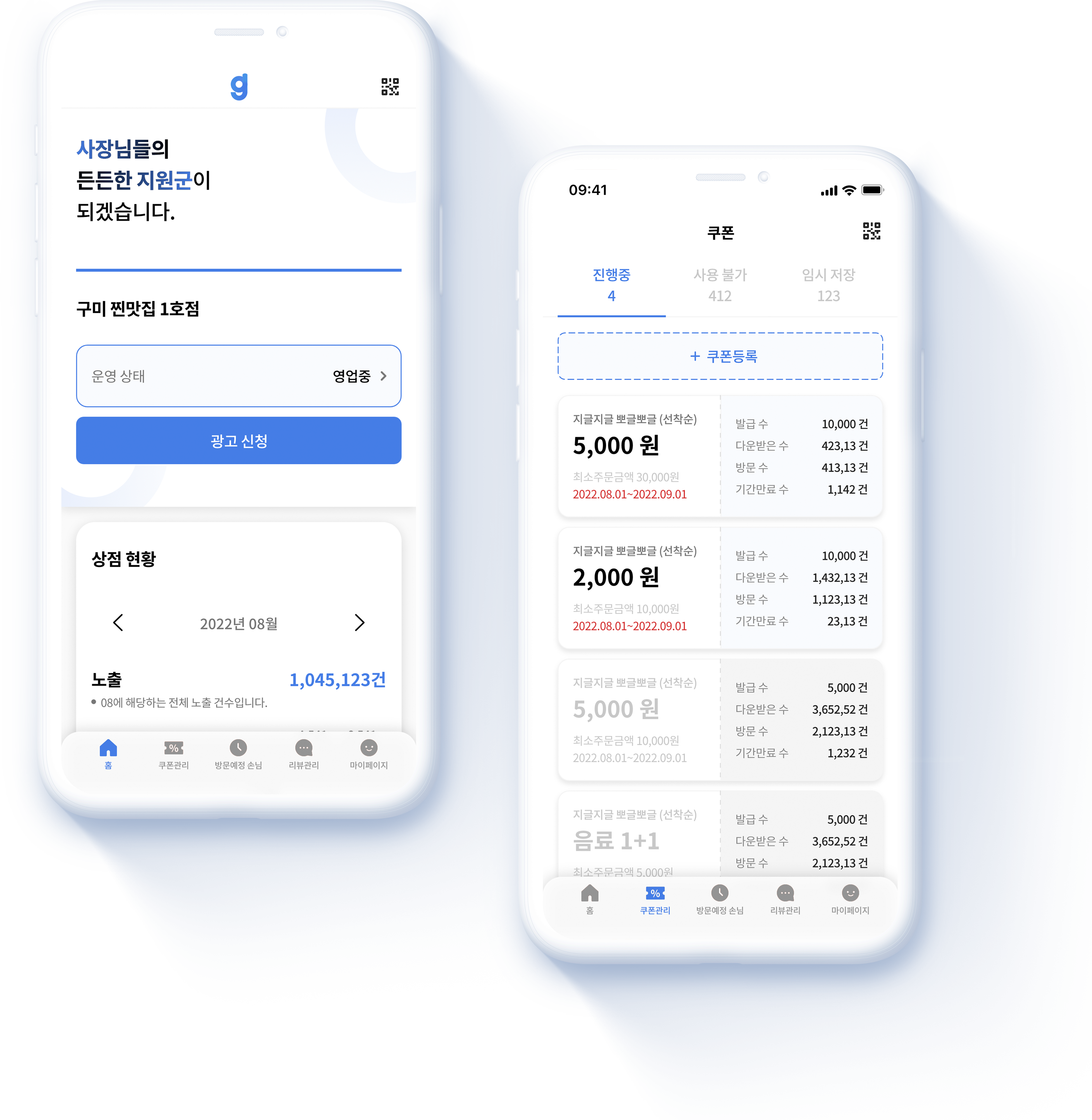 쿠폰 관리, 통계, 리뷰 관리까지!
